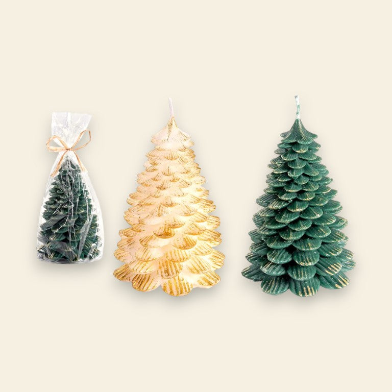 - Candela Albero di Natale con Effetto Oro Spazzolato 🕯️Una scintilla di design e atmosfera. La sua fiamma danza sui rami dorati, proiettando una luce calda che trasforma ogni stanza in un rifugio incantato. (Colore casuale, bianco o verde, per un tocco di sorpresa).