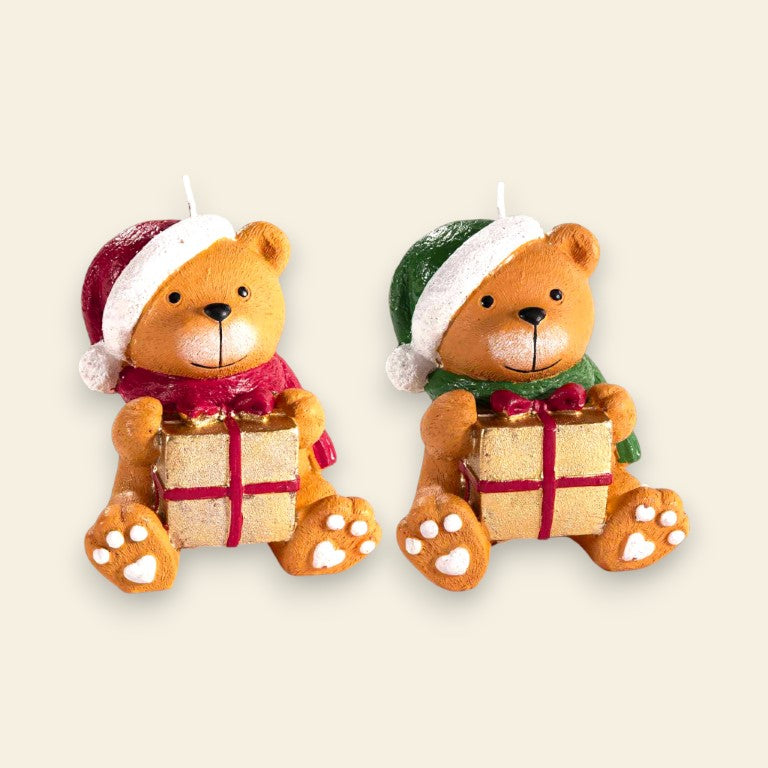 - Candela Orsetto che tiene un Regalo 🕯️Un tenero orsetto che stringe un dono, pronto a vegliare sulla vostra lettura. La sua luce soffusa è una piccola guardiana di sogni, perfetta per creare un'atmosfera magica e sicura. (NB: Nella fascia d'età dai 3 anni la candela verrà sostituita dai fermagli per capelli a tema renna di Natale, per rendere la lettura ancora più divertente)